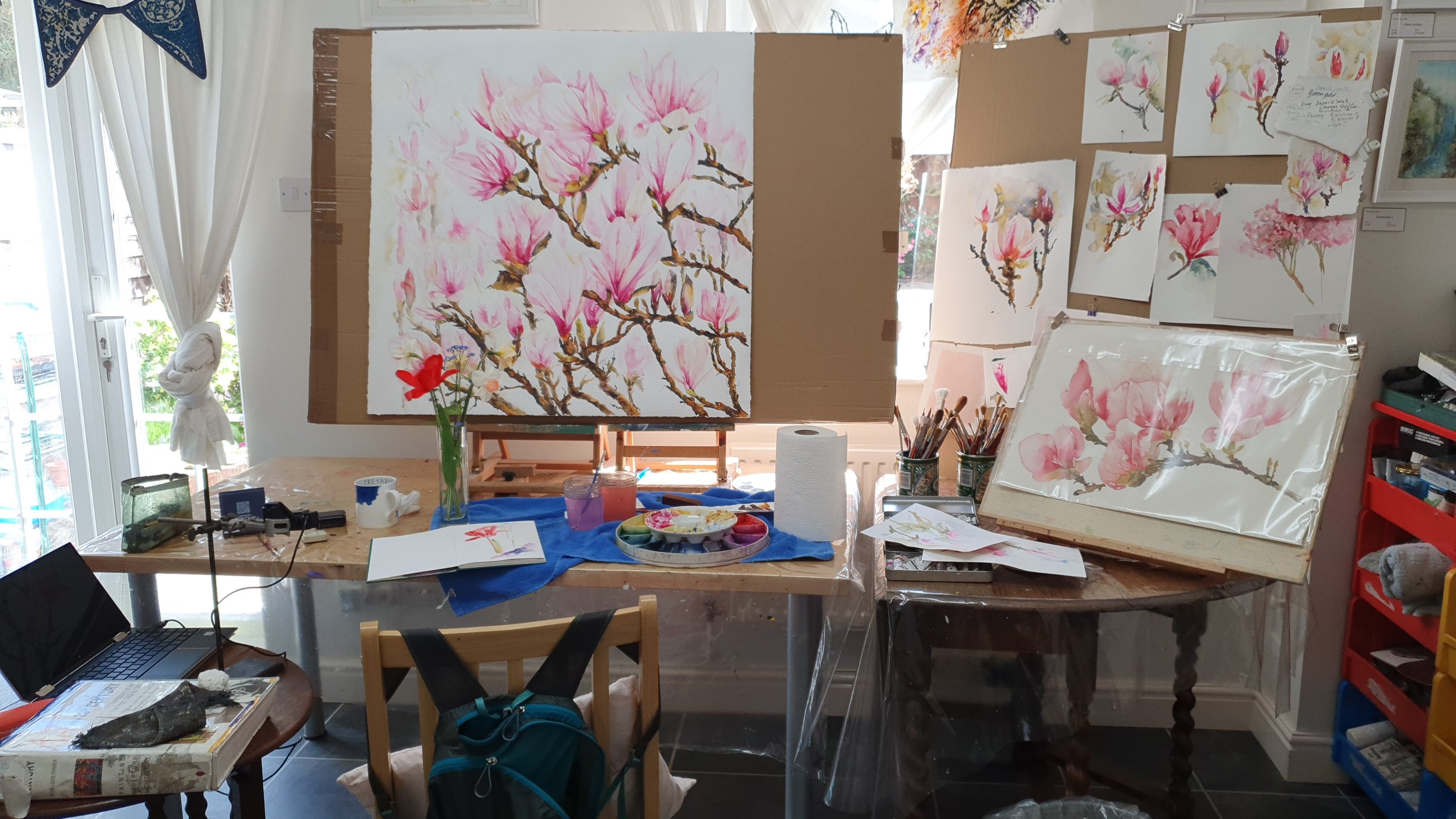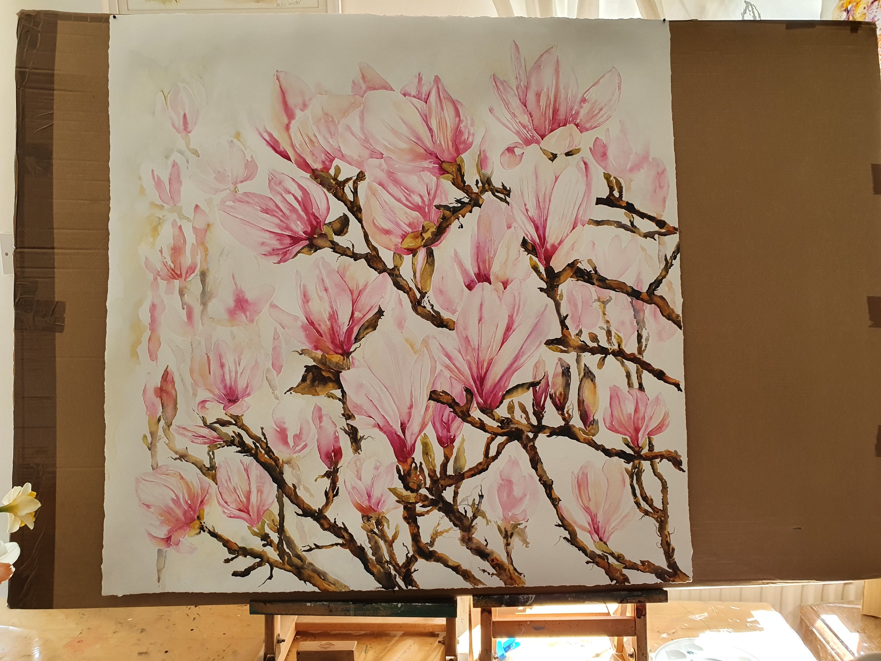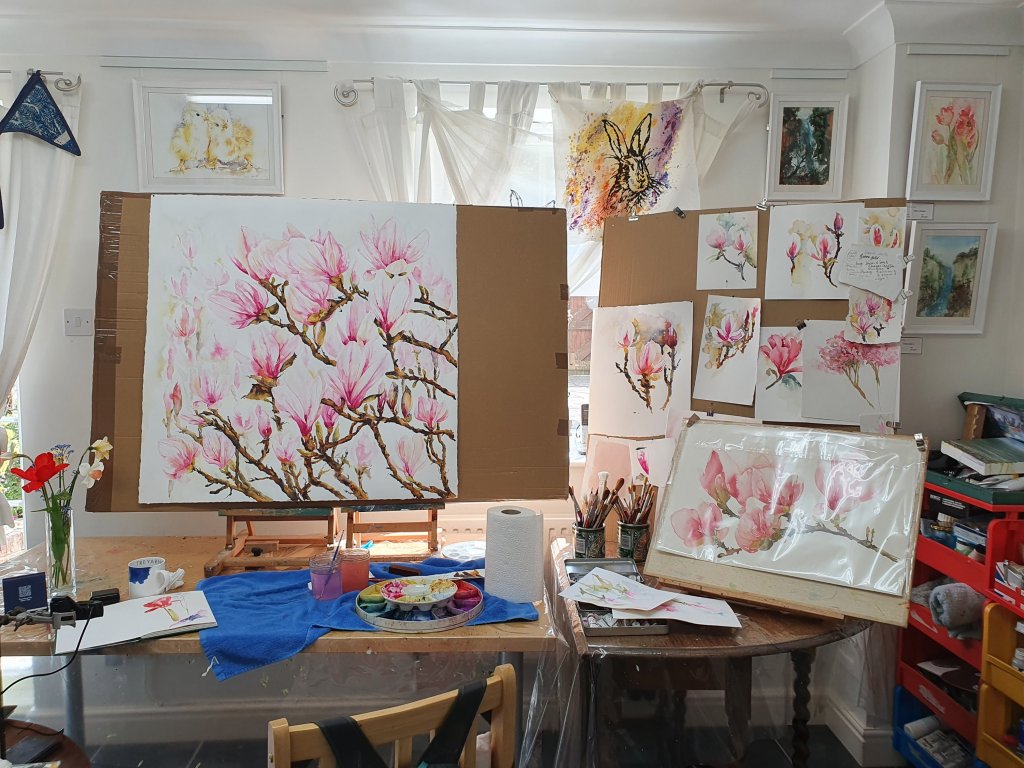 Finished. This is a 1 metre x 1 metre watercolour. I really needed to do all those things that we tell our students to do, make pencil studies, trial paper types (this was a giant sheet of watercolour paper from Atlantis) make colour studies, get ‘real life’ examples for direct observational studies, take photos, plan and…. Start.