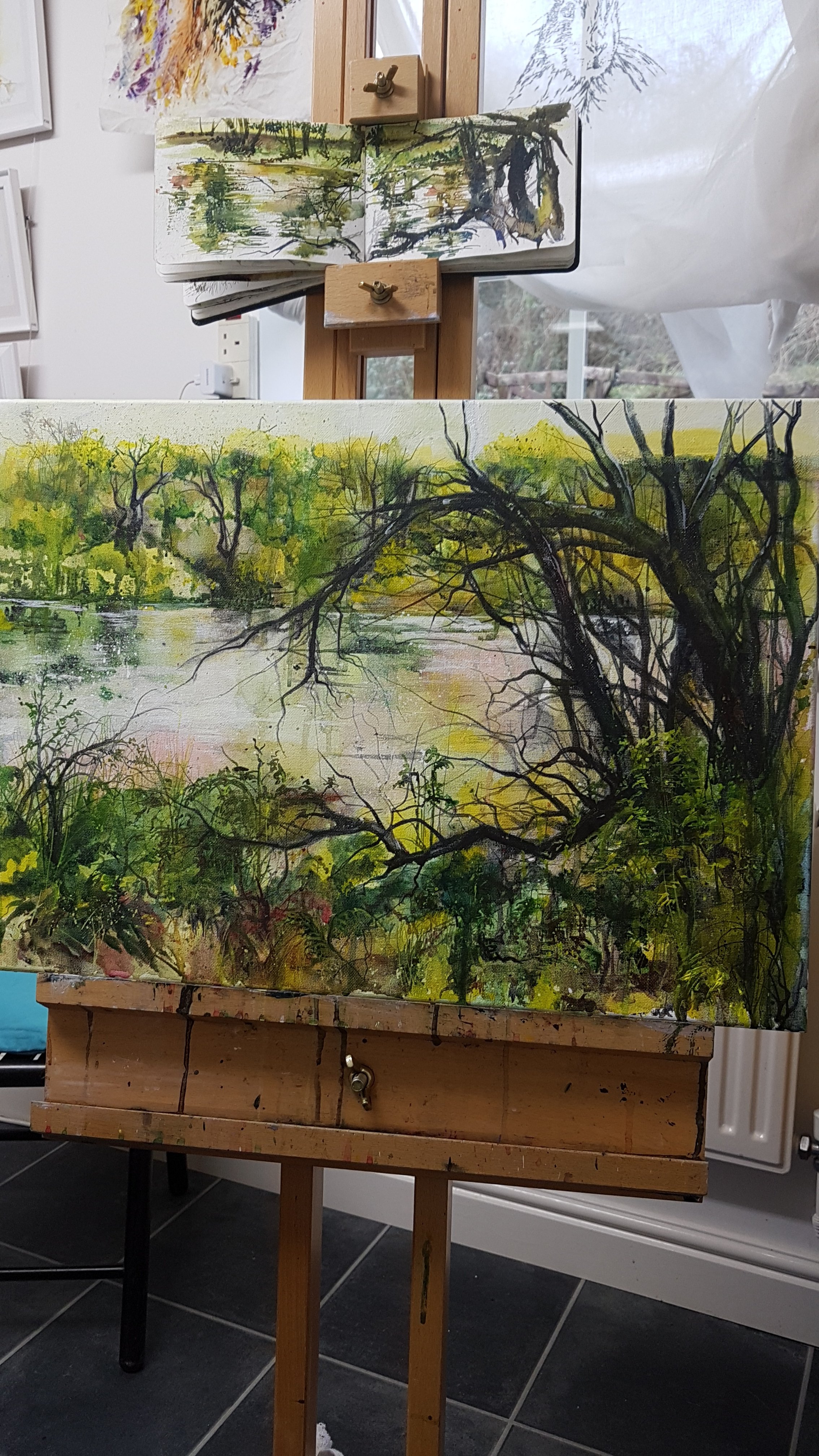 This painting was bought as a present for this lovely American gentleman, whom I met at a social event in London with his wife. She secretly commissioned the piece and we eventually shipped it across to Colorado. She had it hidden for ages until a special anniversary. He was pleased and surprised and they sent me these photos.