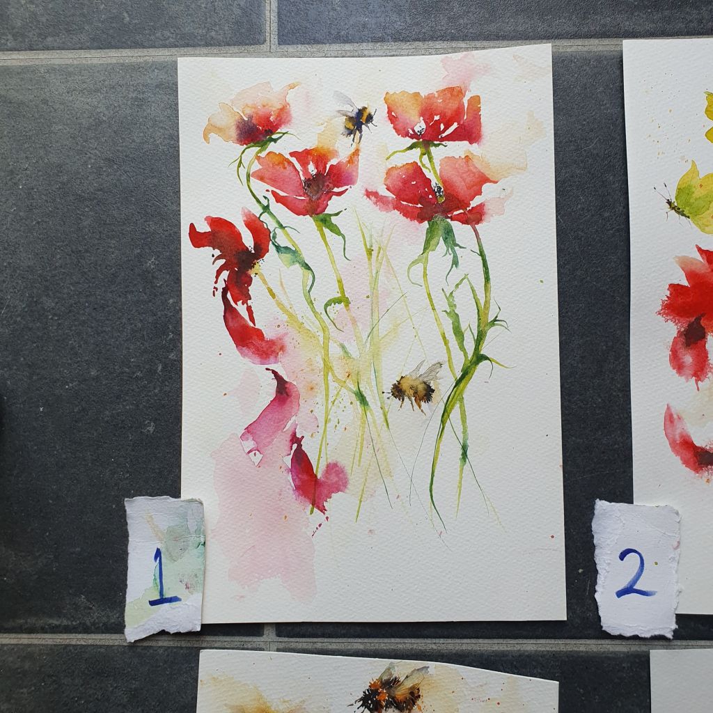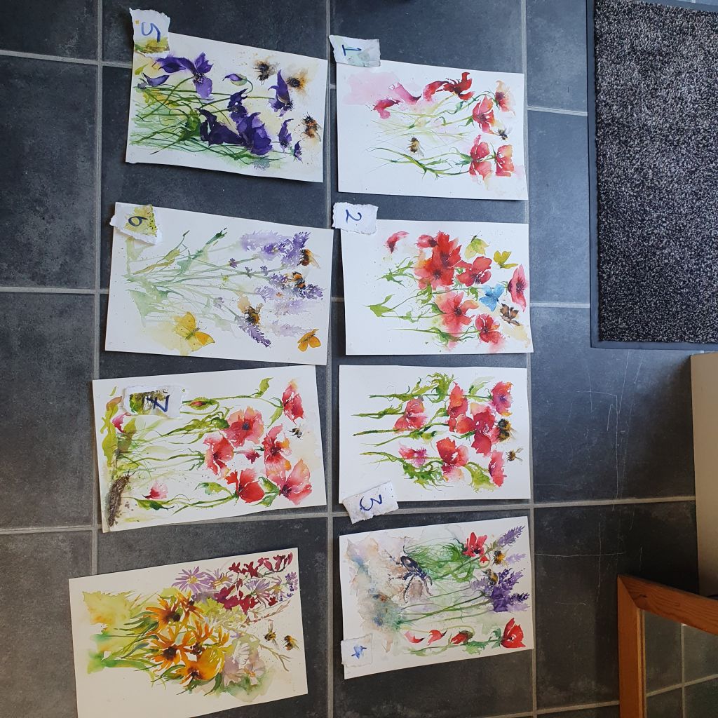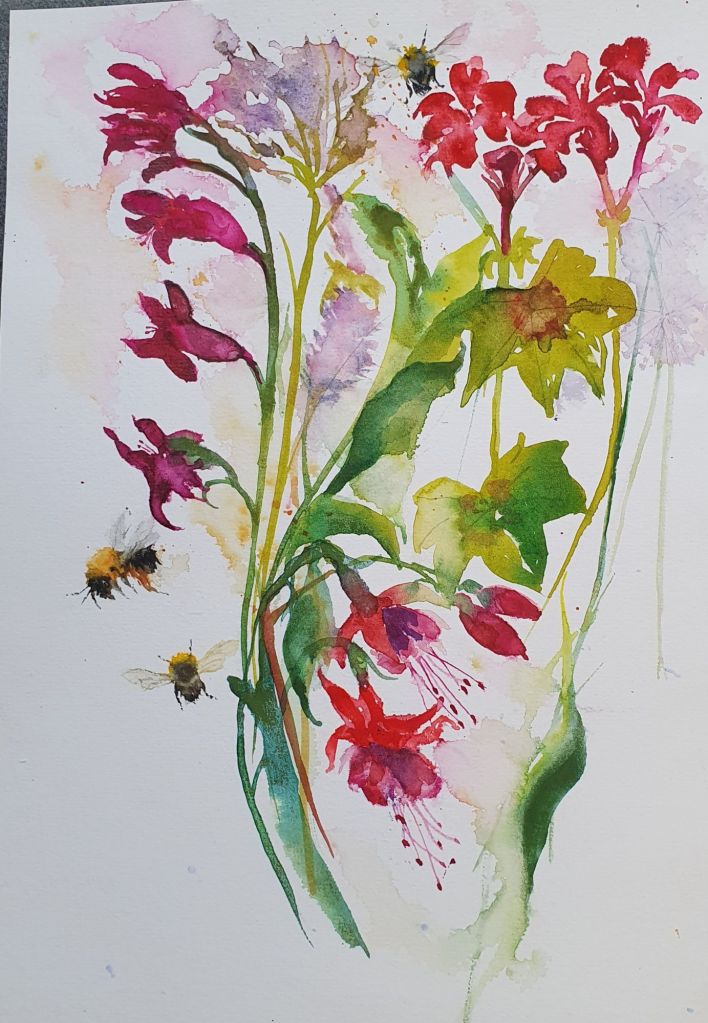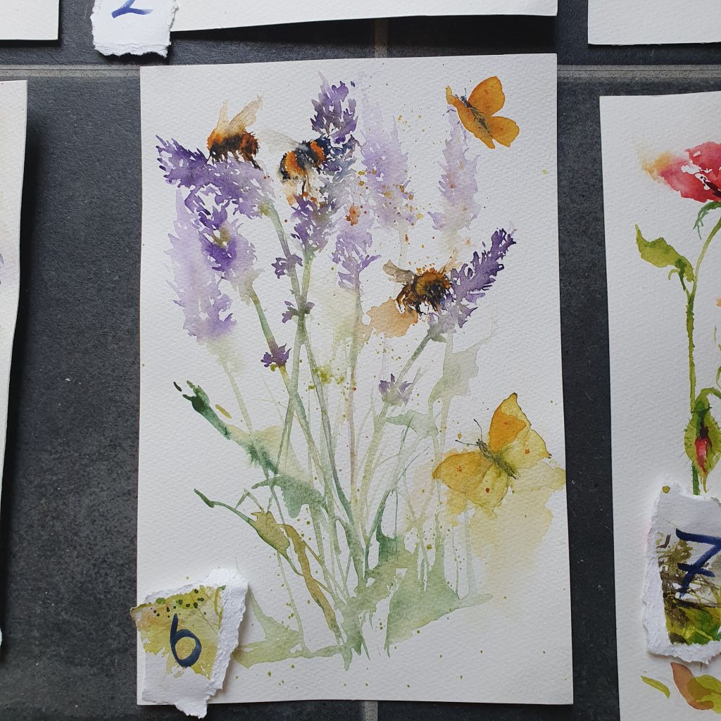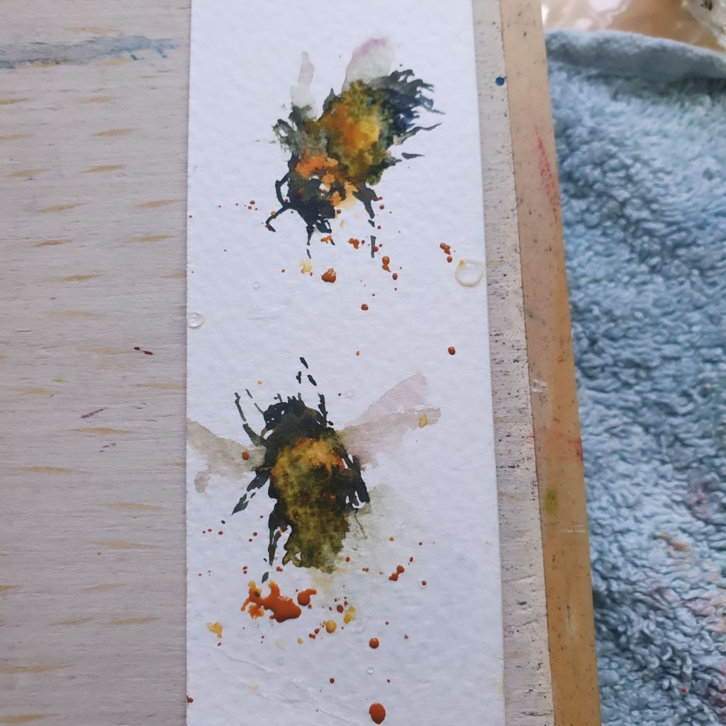 Commission underway, 2/7, practising bees, placements etc… #loose watercolour