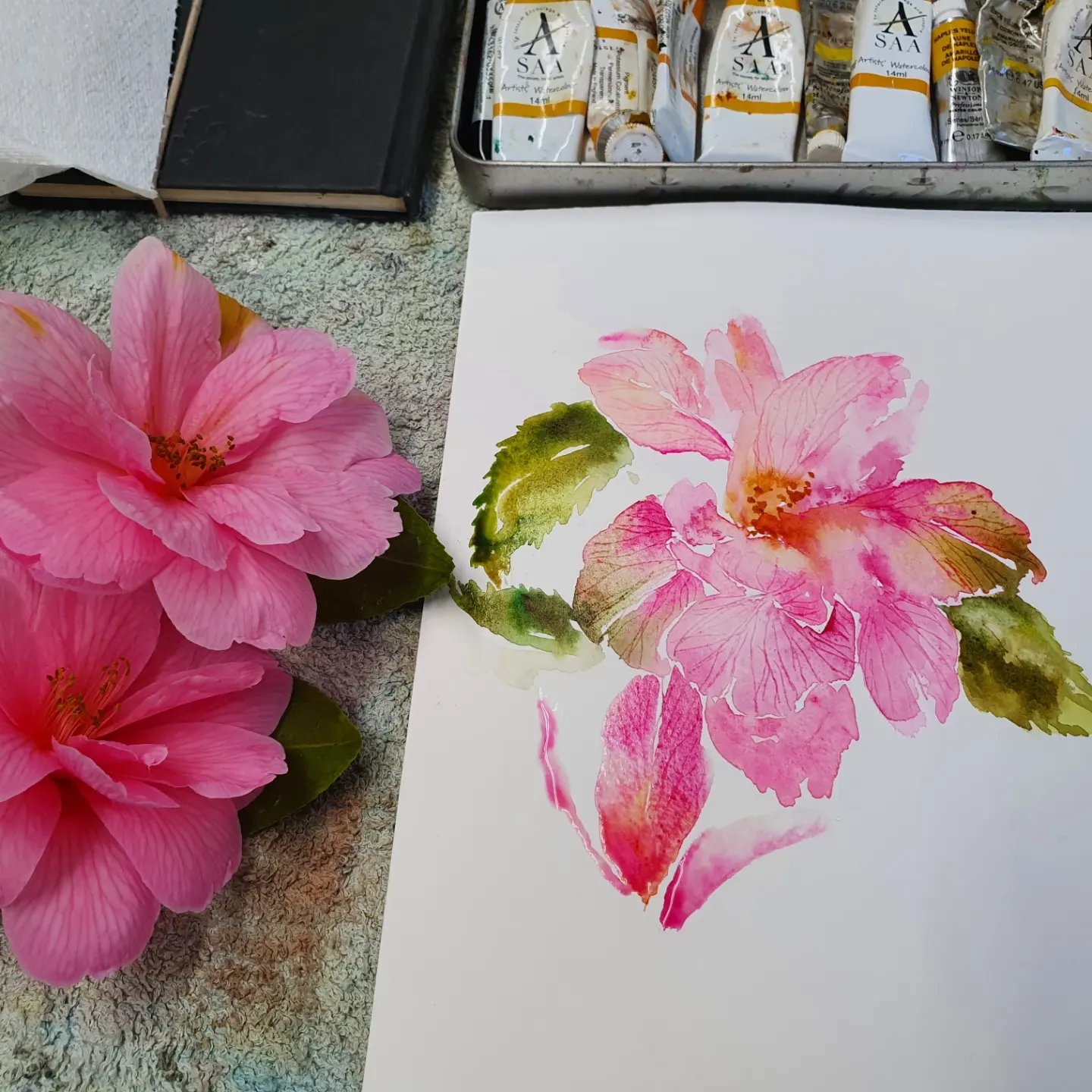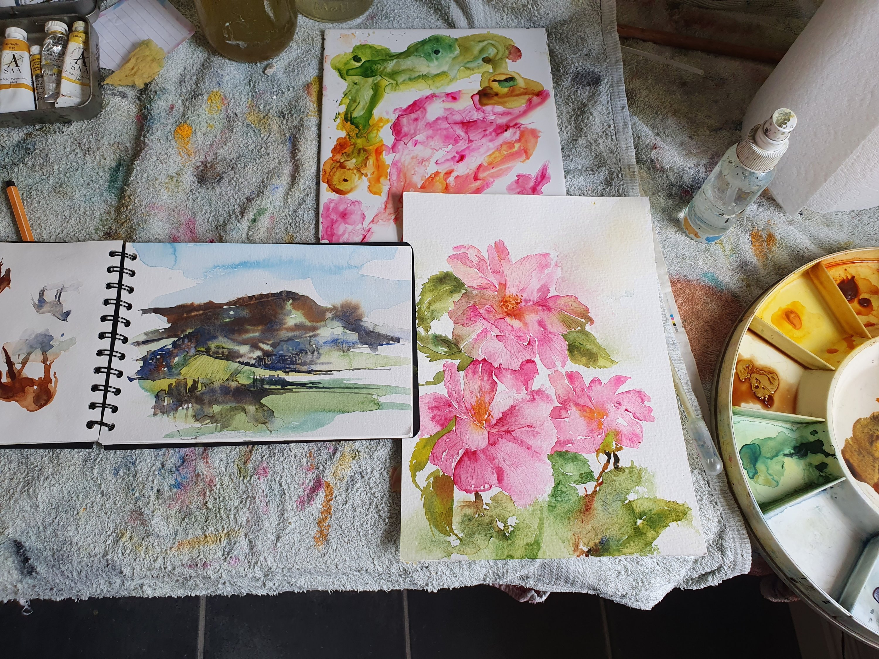 Working from resources and sketchbook then loosely on beautiful Saunders Waterford paper and enjoying the magic of watching paint dry…
