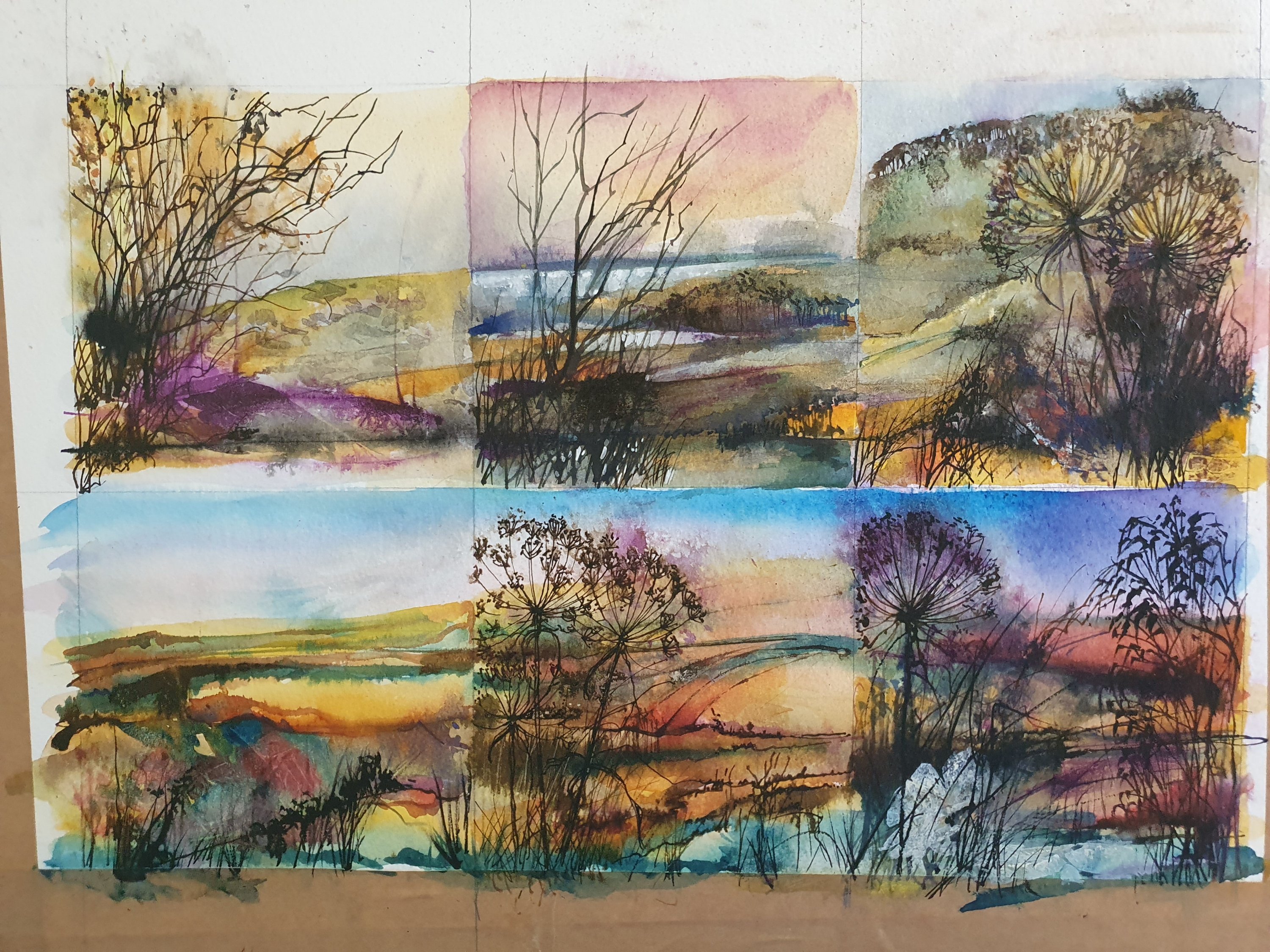 Gathering sketches and studies ready to do some watercolours of Bluebell Hill