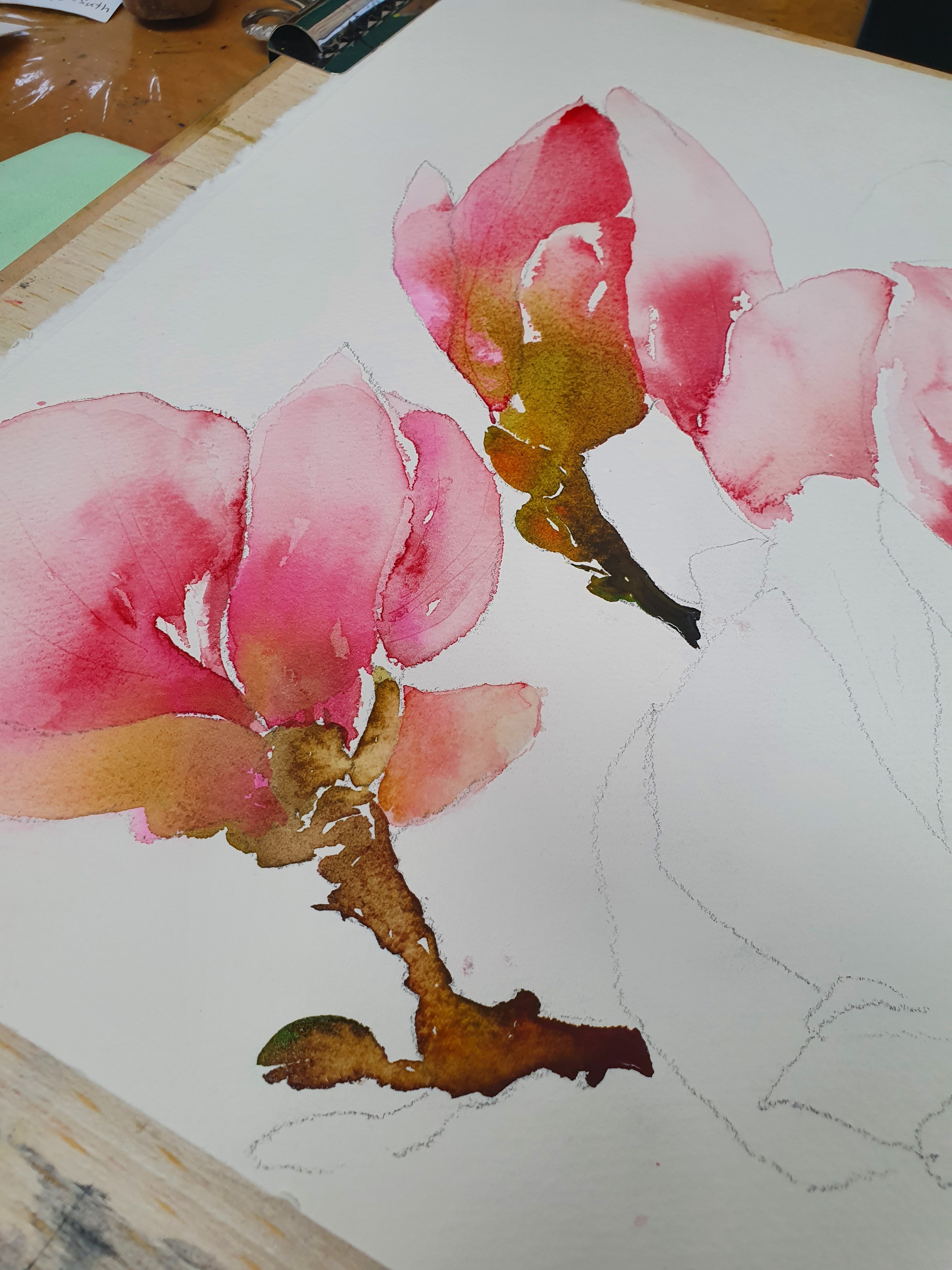 Finished. This is a 1 metre x 1 metre watercolour. I really needed to do all those things that we tell our students to do, make pencil studies, trial paper types (this was a giant sheet of watercolour paper from Atlantis) make colour studies, get ‘real life’ examples for direct observational studies, take photos, plan and…. Start.
